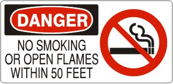 NO SMOKING OR OPEN FLAMES WITHIN 50 FEET WITH SMOKING – DANGER SIGN 5" X 12" ADHESIVE VINYL OUR SELF-ADHESIVE VINYL SIGNS AND LABELS ARE MADE OF FL...