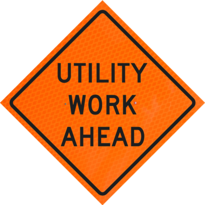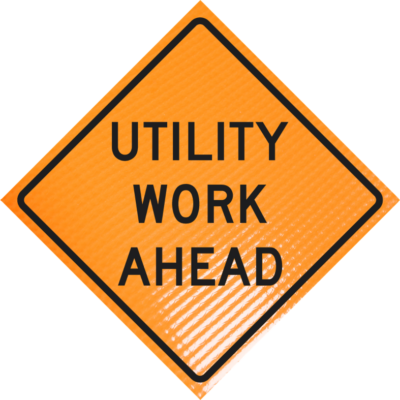 View full details"UTILITY WORK AHEAD" Non-Reflective, Vinyl Roll-Up Sign, 48 x 48