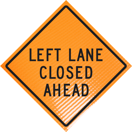 View full details"LEFT LANE CLOSED AHEAD" Non-Reflective, Vinyl Roll-Up Sign, 48 x 48
