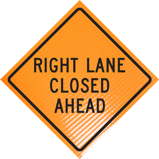 View full details"RIGHT LANE CLOSED AHEAD" Non-Reflective, Vinyl Roll-Up Sign, 48 x 48