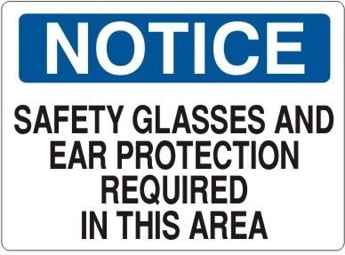 View full details"NOTICE SAFETY GLASSES AND EAR PROTECTION REQUIRED IN THIS AREA" - Safety Sign, Rigid Plastic, 10"x14"