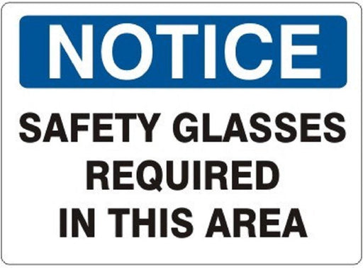 View full details"NOTICE SAFETY GLASSES REQUIRED IN THIS AREA" - Safety Sign, Rigid Plastic, 10"x14"