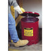 Justrite 09300 Oily Waste Can, 10 gallon, Foot-Operated Self-Closing Cover, Red