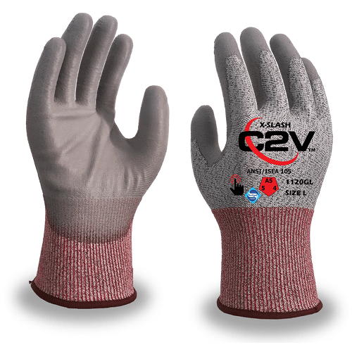 View full detailsANSI A6 X-Slash Cut Resistant Gloves, 13 Gauge HPPE/Glass/Steel Shell, Gray Polyurethane Coated Palm, Touchscreen - 1 Pair