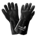 PVC gloves with good grip in wet or oily situations, these premium gloves feature a sandpaper finish on double-dipped black PVC. The jersey liner provides support while retaining the flexibility to reduce hand fatigue. They are 12-inches long with a wide cuff that grants protection while remaining easy to put on and take off.