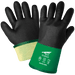 These 12-inch long double-dipped on PVC and nitrile gloves feature a seamless, 15-gauge Aralene® (enhanced aramid fiber) liner. The gloves are enhanced with a sandpaper grip dipped palm. Nitrile provides chemical resistance and blended with 70% PVC, adds additional flexibility.