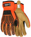 The MC503 UltraTech® mechanics glove is a rugged glove option. It features a two-way, hi-vis orange material on the back with an exclusive TPR design that provides excellent coverage for back-of-hand protection. The palm of the MC503 features premium goatskin lined with Dyneema® Diamond Technology fiber, offering excellent cut protection. The thumb crotch is reinforced with a coated DuPont™ Kevlar® fiber, providing additional protection in this critical high-stress area. Other features include a comfortable open cuff design with a pull tab for secure donning and an ID panel on the wrist for user personalization.