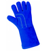 Select premium grade leather welders glove, blue color, featuring a reinforced palm, Aramid fiber sewn stitches, welting in all vulnerable seams for added wear and protection, and a full semi-sock thermal-knit cotton lining for comfort and added heat protection.