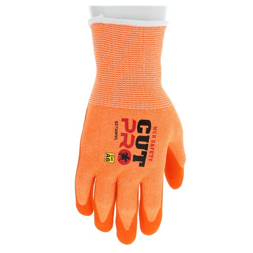 ANSI A6 Cut Pro / Cut Resistant Gloves, 13 Gauge Hypermax Shell, Sandy Foam Nitrile Coated Palm Dip, Hi-Vis Orange, 92730HV (1 Pair)