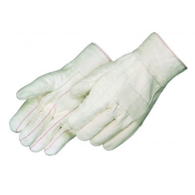 24 oz. premium grade hot mill gloves Nap-out cotton canvas Straight thumb Clute pattern 2 ½ ” band top Knuckle strap