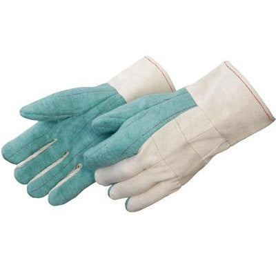 30 oz. heavy weight green hot mill glove Burlap-lined reinforcing Nap-out 2 ½” band top