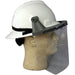 The standard slotted frame works ideally with any MSA slotted helmet. The universal frame featuring a heavy-duty, flat, rubber strap can be used with slotted and non-slotted MSA helmets. With the unique sloped frame design material slides off the frame and out of site. The optional debris control creates a tight seal between helmet and frame. The elevated temperature versions withstand temps up to 350ºF (176ºC).