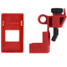 Single-pole circuit breakers can effectively be locked out by these devices. By turning the screw, the lockout device pinches the switch and blocks it from movement. During maintenance work, this procedure makes sure that switches and therefore the machines are not accidentally turned on. The non-conductive circuit breaker lockout can be used universally on any standard single-pole circuit breaker. Thanks to the additional adapter, the lockout device can also be used on blade-type electric fuses.