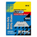 The HB-96 Hook Blade is high quality steel and holds a very sharp edge that lasts longer than other brands. With the universal two-notch blade they fit most standard utility knives on the market and are perfect for cutting roofing, linoleum, carpets and much more. They are wrapped in tucks of five blades and packaged together in a box of 100 blades.