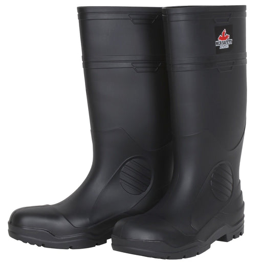 Black 16 Inch Waterproof PVC Work Boots with Steel Toe, Cleated Sole and Polyester Interior Lining - Over the Sock Style, VBS120