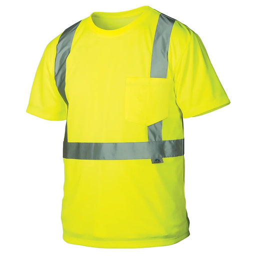 ANSI TYPE R CLASS 2 Hi-vis lightweight polyester moisture wicking t-shirt. 2'' silver reflective material. Chest pocket. Rated UPF 30+ 1 pocke...