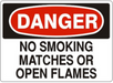 "DANGER NO SMOKING MATCHES OR OPEN FLAMES" - Safety Sign, Rigid Plastic, 10"x14"
