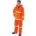 Luminator, PVC/Polyester 3 Piece Suit, Detachable Hood, Snap Front, Fluorescent Orange w/Lime Silver Stripes, 2013R