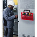 Maintenance or service work on big machinery is usually an organizational effort. Many different access points have to be locked out, many different groups of workers with different professions are at work. If all people involved had to lock out each access point, it would become not only a very timely effort, but it would also require a large number of padlocks. The solution: The Safety Redbox™. Thanks to this product, only the foreman has to lock out all the access points and then put the different keys into the box. All other people involved lock the Safety Redbox™ with their personalized padlock, thus all the keys are stored away until the end of the maintenance process. The Safety Redbox™ convinces through its handiness. Due to its low weight, it can easily be carried around. In addition, the Safety Redbox™ comes with a wall bracket; the hinges that hold the box in place are on the back. This way it can also be used stationary and each machine can be assigned a single box. Employees will have no difficulties finding the right box for the right machine.