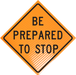 "BE PREPARED TO STOP" Non-Reflective, Vinyl Roll-Up Sign, 48 x 48