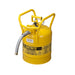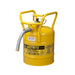 Justrite 7350230 Type II AccuFlow D.O.T. Steel Safety Can, 5 Gallon, 1-Inch Metal Hose, Roll Bars, Yellow