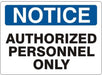"NOTICE AUTHORIZED PERSONNEL ONLY" - Safety Sign, Rigid Plastic, 10"x14"