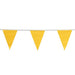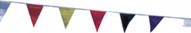 Each 100' line has about 60 - 9" x 12" brightly colored, polyethylene pennants double-sewn to a high-strength cord. Multi-color lines have alternating Red, White, Blue, Green, Orange, and Yellow Pennants. Also available by request, solid lines of either all Red or all Yellow.